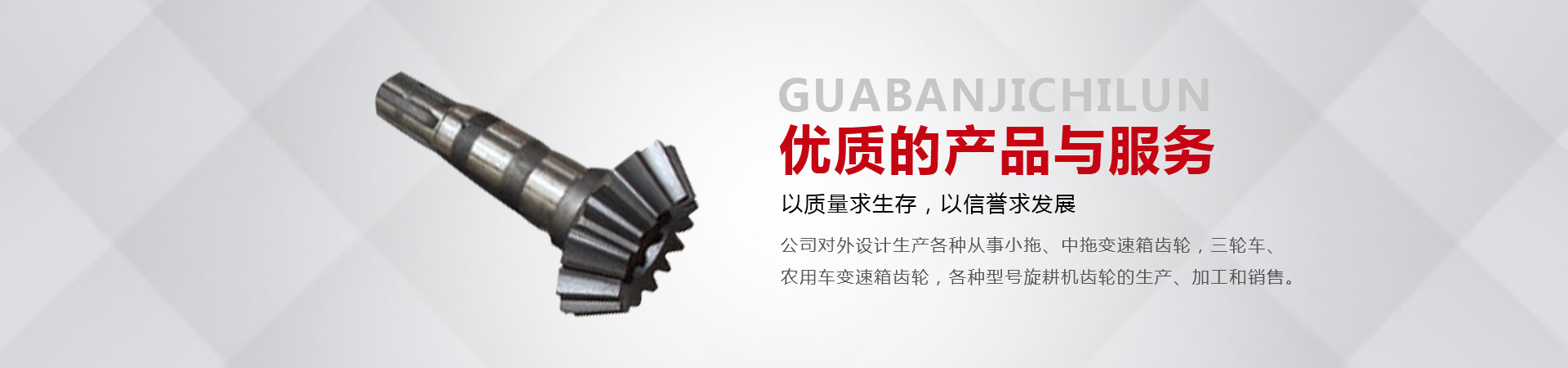 本廠位于省會東南60公里的全國重點鎮(zhèn)——大陸村鎮(zhèn)。本廠在市場內(nèi)設(shè)有銷售公司,經(jīng)銷工程機械;農(nóng)用拖拉機;農(nóng)機具的整機和全車配件。市場緊靠308國道,距青銀高速寧晉路口14公里,交通十分方便。主要從事小拖、中拖變速箱齒輪,三輪車、農(nóng)用車變速箱齒輪,各種型號旋耕機齒輪、收獲機械變速箱齒輪的生產(chǎn)、加工和銷售。同時加工定做各種直齒輪,傘齒輪,斜齒輪,鏈輪,齒輪軸等機械產(chǎn)品。廠內(nèi)檢測手段齊全。十幾年來與河北、北京、山東、安徽、河南、吉林、陜西、山西、寧夏、黑龍江、遼寧等省市的企業(yè)建立了穩(wěn)固的業(yè)務關(guān)系。產(chǎn)品質(zhì)量穩(wěn)定、價格合理、供貨及時。